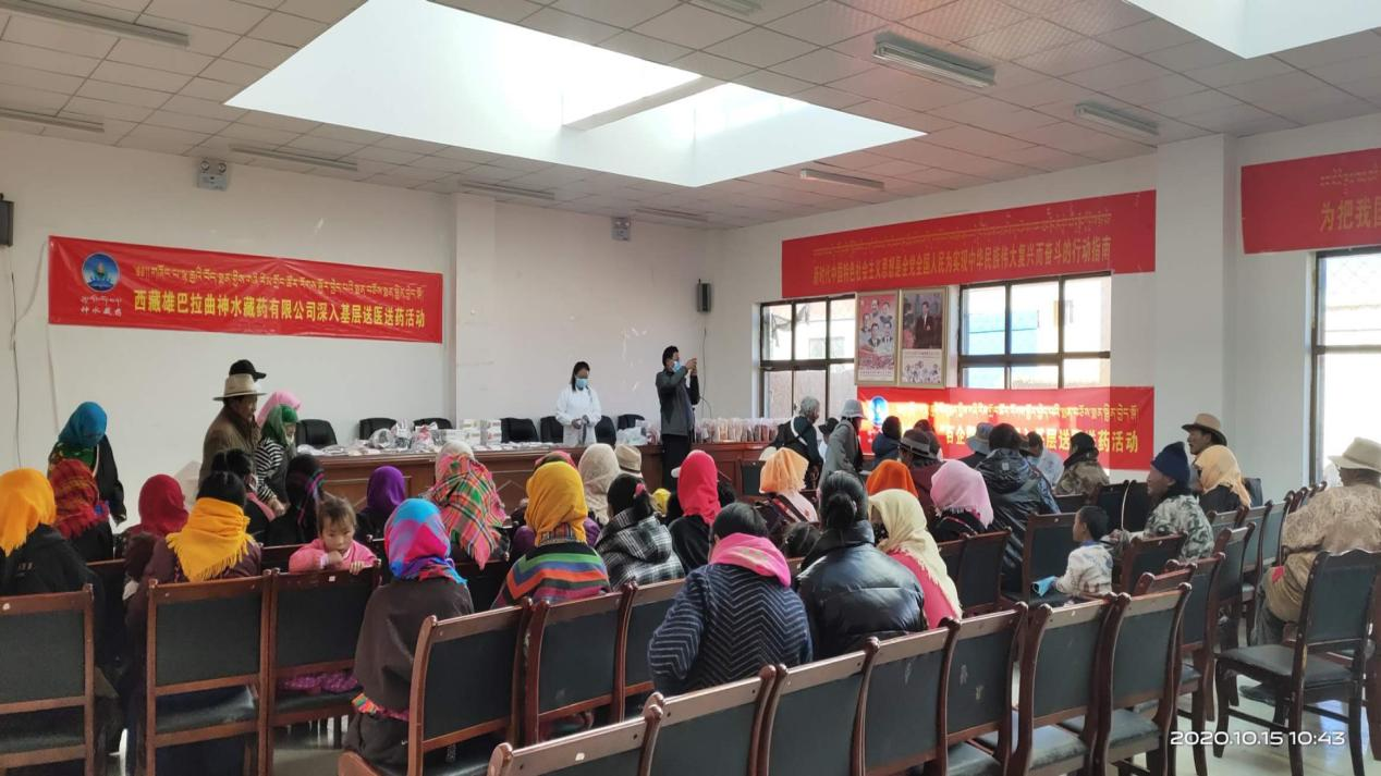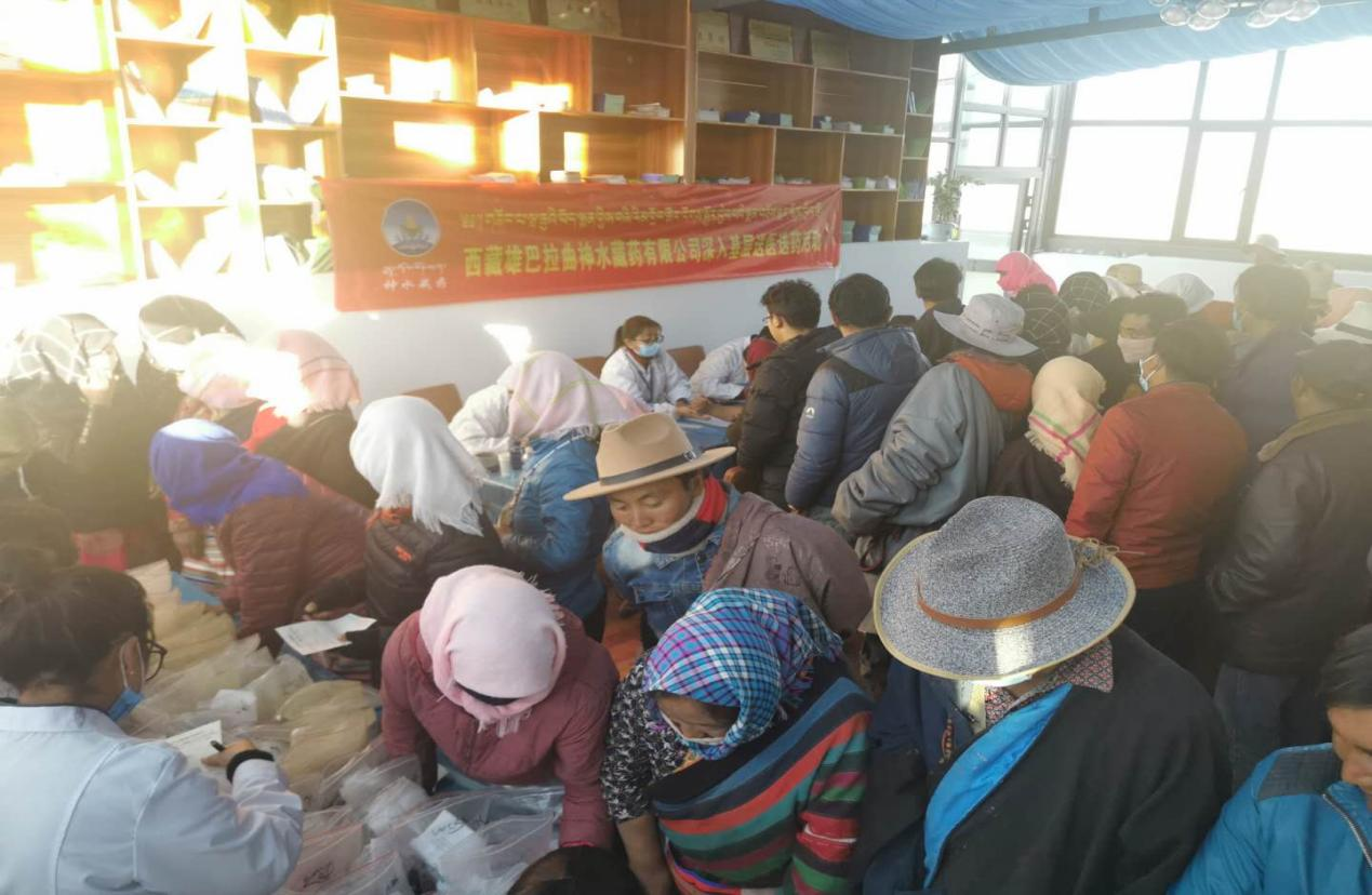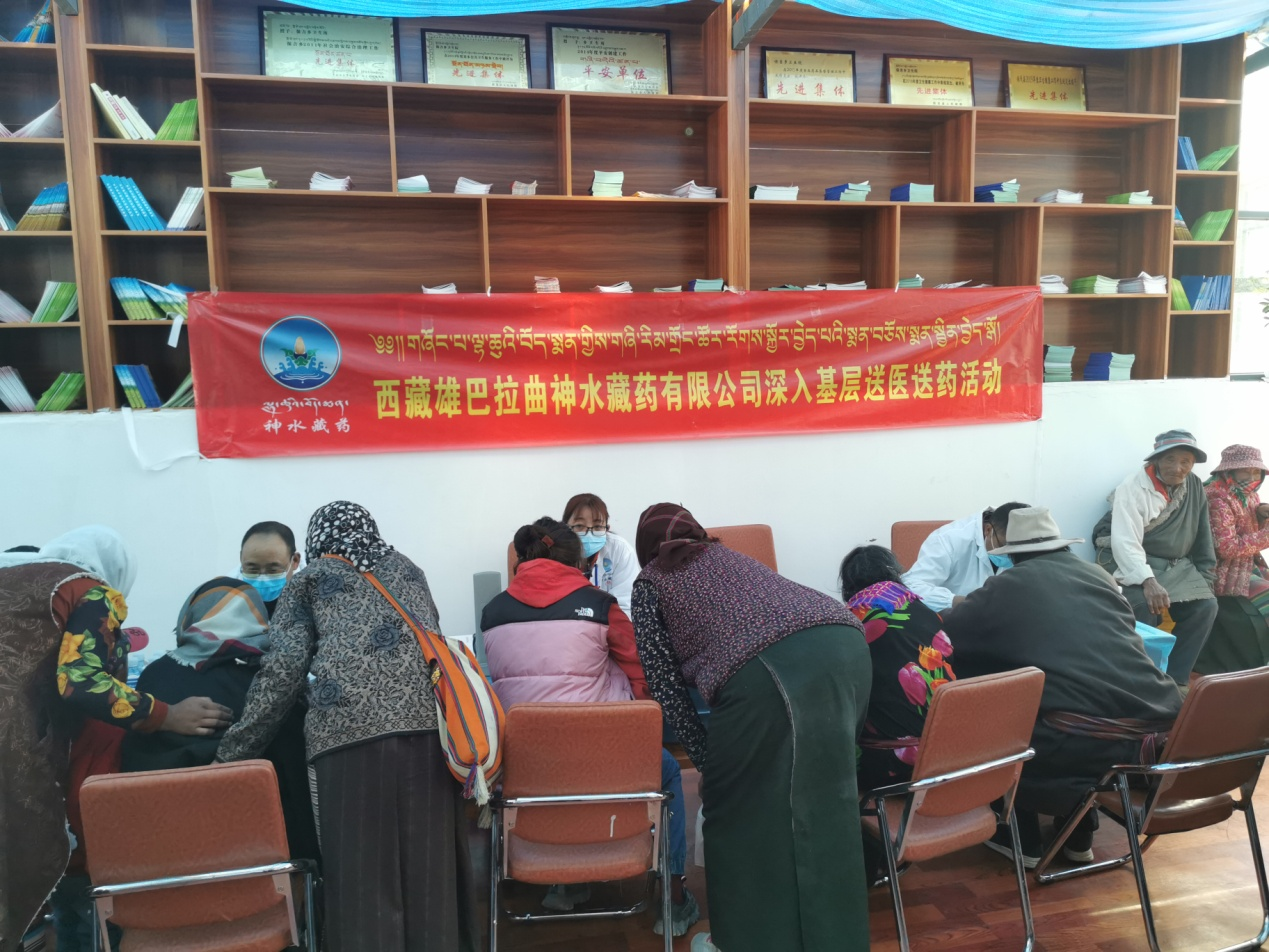 為切實貫徹落實自治區(qū)黨委、區(qū)工商聯(lián)等上級部門提出的“百企幫百村”扶貧工作指示精神,2020年10月14日,由公司黨支部組織帶領(lǐng)企業(yè)藏醫(yī)醫(yī)人員先后前往那曲市雙湖縣多瑪鄉(xiāng)、那曲市班戈縣保吉鄉(xiāng),班戈縣五保集中供養(yǎng)服務(wù)中心,班戈縣佳瓊鎮(zhèn)開展了為期5天的送醫(yī)送藥活動,義診組一行克服高海拔、寒冷天氣,缺氧不缺精神,切實解決了當(dāng)?shù)啬撩袢罕娋歪t(yī)難,缺醫(yī)少藥的問題,在此次活動期間我公司專家人員細(xì)心向牧民群眾講解各種疾病的防護(hù)措施,認(rèn)真細(xì)致的對每一名牧民群眾進(jìn)行問診,發(fā)放藥品,本次共計發(fā)放藥品累計24萬多元,問診牧民群眾共計900多人,前來看病的群眾絡(luò)繹不絕,認(rèn)真細(xì)致的問診,熱切關(guān)心的問候,把神水藏藥公司對農(nóng)牧民群眾的關(guān)心和愛護(hù)體現(xiàn)得淋漓盡致。看病的村民都說“像這樣的義診活動很好,不用到醫(yī)院排隊,在家門口就能看好病。
