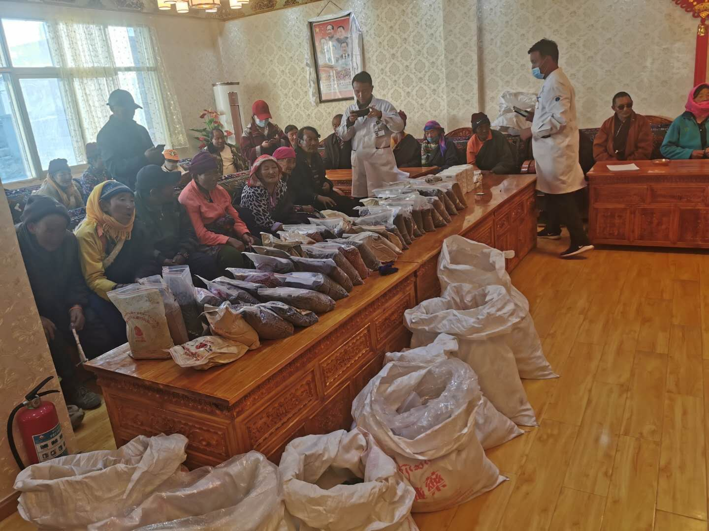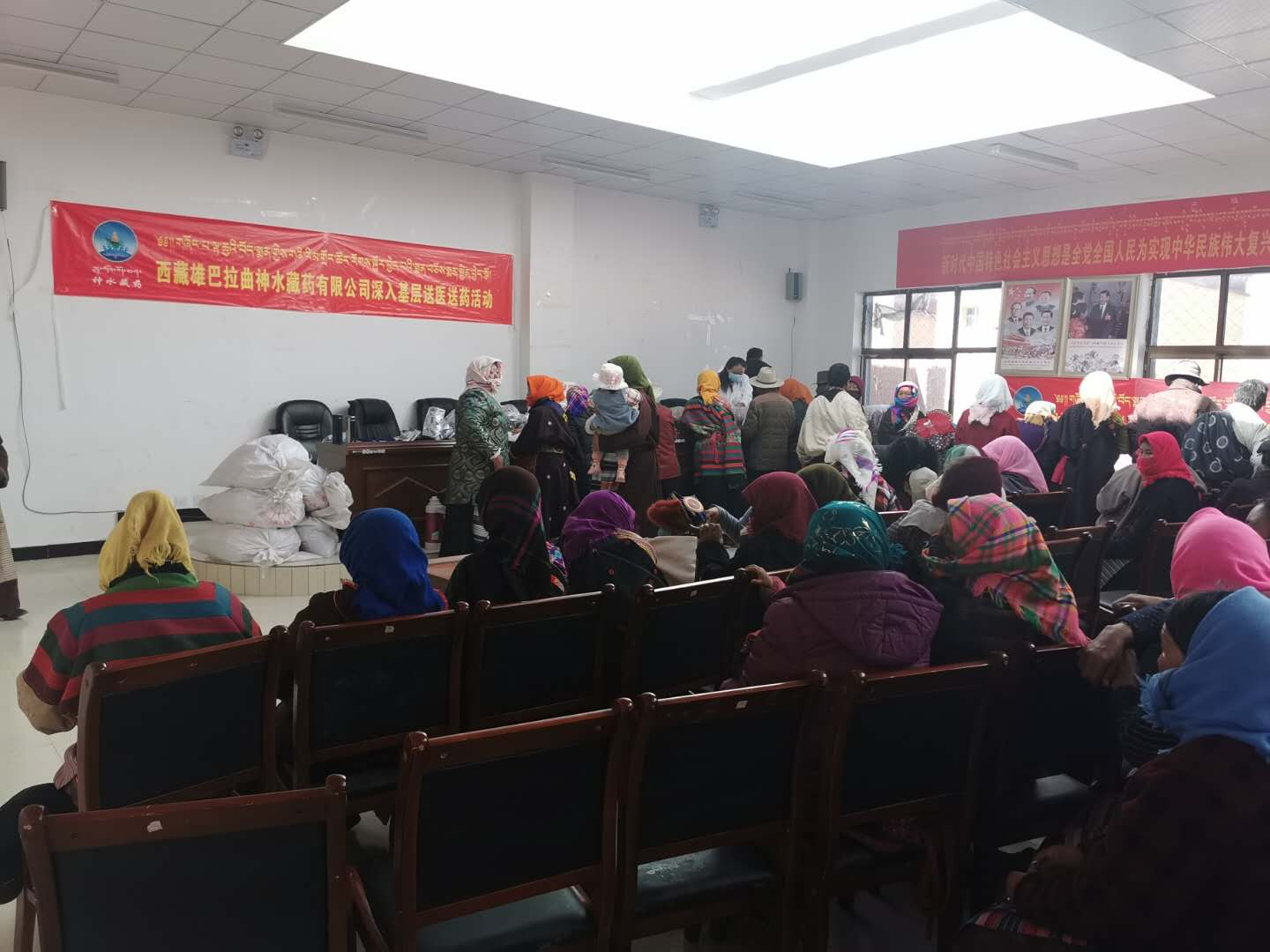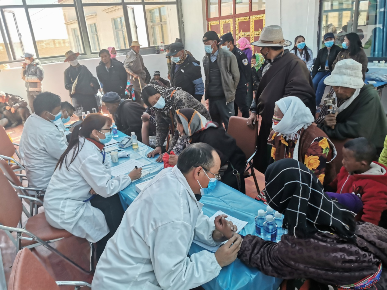 為切實貫徹落實自治區(qū)黨委、區(qū)工商聯(lián)等上級部門提出的“百企幫百村”扶貧工作指示精神,2020年10月14日,由公司黨支部組織帶領(lǐng)企業(yè)藏醫(yī)醫(yī)人員先后前往那曲市雙湖縣多瑪鄉(xiāng)、那曲市班戈縣保吉鄉(xiāng),班戈縣五保集中供養(yǎng)服務(wù)中心,班戈縣佳瓊鎮(zhèn)開展了為期5天的送醫(yī)送藥活動,義診組一行克服高海拔、寒冷天氣,缺氧不缺精神,切實解決了當(dāng)?shù)啬撩袢罕娋歪t(yī)難,缺醫(yī)少藥的問題,在此次活動期間我公司專家人員細(xì)心向牧民群眾講解各種疾病的防護(hù)措施,認(rèn)真細(xì)致的對每一名牧民群眾進(jìn)行問診,發(fā)放藥品,本次共計發(fā)放藥品累計24萬多元,問診牧民群眾共計900多人,前來看病的群眾絡(luò)繹不絕,認(rèn)真細(xì)致的問診,熱切關(guān)心的問候,把神水藏藥公司對農(nóng)牧民群眾的關(guān)心和愛護(hù)體現(xiàn)得淋漓盡致。看病的村民都說“像這樣的義診活動很好,不用到醫(yī)院排隊,在家門口就能看好病。